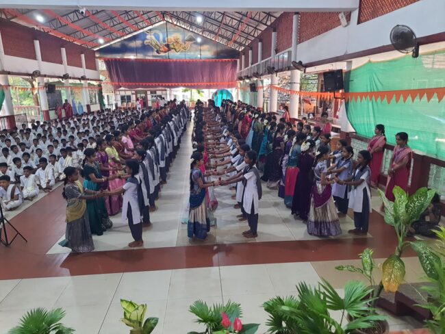 ಮೊದಲಿಗೆ ೭ನೇ ತರಗತಿಯ ವಿದ್ಯಾರ್ಥಿಗಳು ಭಾರತ ಮಾತೆಗೆ ಪುಷ್ಪಾರ್ಚನೆಗೈದು, ತಿಲಕಧಾರಣೆ ಮಾಡಿಸಿ, ಹಿರಿಯರಿಂದ ಆರ್ಶೀವಾದ ಪಡೆದುಕೊಂಡರು. ೬ನೇ ವಿದ್ಯಾರ್ಥಿಗಳು ೭ನೇ ತರಗತಿ ವಿದ್ಯಾರ್ಥಿಗಳಿಗೆ ಪುಷ್ಪ ಪ್ರಧಾನ ಮಾಡಿದರು. ೭ನೇ ತರಗತಿಯ ವಿದ್ಯಾರ್ಥಿಗಳು ಈ ವಿದ್ಯಾ ದೇಗುಲದಲ್ಲಿ ತಾವು ಕಳೆದ ಕ್ಷಣಗಳ ಸವಿ ನೆನಪುಗಳನ್ನು ಹಂಚಿಕೊಂಡರು. ೬ನೇ ತರಗತಿಯ ವಿದ್ಯಾರ್ಥಿಯಾದ ಭೂಮಿಕಾ ಪ್ರೇರಣಾ ಗೀತೆಯನ್ನು ಹಾಡಿದರು. ಪ್ರಾಥಮಿಕ ಹಾಗೂ ಪ್ರೌಢಶಾಲಾ ವಿದ್ಯಾರ್ಥಿಗಳಿಗೆ ಪುಸ್ತಕ ಹಾಗೂ ಸಮವಸ್ತ್ರ ವಿತರಿಸಲಾಯಿತು. ದೀಪ ಎಂದರೆ ಶಾಂತಿ, ಸಮೃದ್ಧಿ, ಬೆಳಕು, ಆರೋಗ್ಯ, ಪ್ರಖರತೆ. ಹೀಗೆ ದೀಪ ಜೀವನದ ಒಂದು ಸಕಾರಾತ್ಮಕ ಬೆಳವಣಿಗೆ . ಅದು ಜ್ಞಾನದ ಸಂಕೇತವೂ ಹೌದು. ಇಂತಹ ದೀಪವು ಪ್ರತಿಯೊಬ್ಬರ ಜೀವನಕ್ಕೊಂದು ಸಂತೋಷ, ನೆಮ್ಮದಿ , ಶಾಂತಿಯನ್ನು ತರಲಿ ಎಂದು ಆಶಿಸುತ್ತಾ ೭ನೇ ತರಗತಿಯ ವಿದ್ಯಾರ್ಥಿಗಳು ಕಿರಿಯ ವಿದ್ಯಾರ್ಥಿಗಳಿಗೆ ದೀಪ ಪ್ರದಾನ ಮಾಡಿದರು.