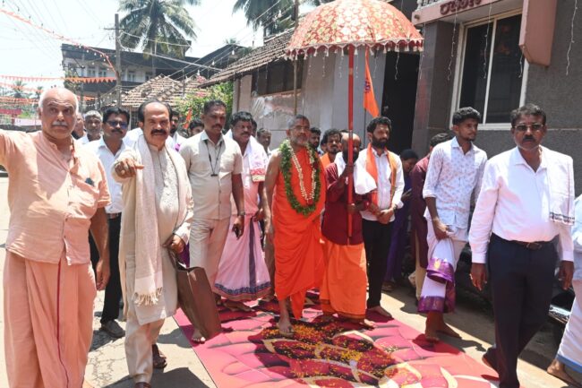 ಇದಕ್ಕು ಮೊದಲು ಪೇಜಾವರ ಮಠಾಧೀಶರನ್ನು ಬೈಪಾಸ್ ಜಂಕ್ಷನ್ ನಿಂದ ಮಂದಿರದ ಹೊರಗೆ ಪೂರ್ಣಕುಂಭದೊಂದಿಗೆ ಮೆರವಣಿಗೆಯಲ್ಲಿ ಕರೆತರಲಾಯಿತು.ಮಧ್ಯಾಹ್ನದ ಮಹಾಪೂಜೆಯ ಬಳಿಕ ಸಾರ್ವಜನಿಕ ಅನ್ನಸಂತರ್ಪಣೆಯು ನಡೆಯಿತು.